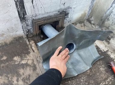 新築時のシート防水と同程度の性能を持たせることが出来る「改修ドレン設置工法」です。