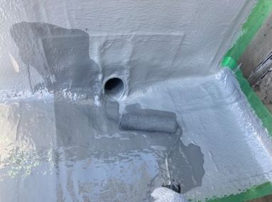 水漏れの疑いが濃厚なドレン周辺を覆い補修します。